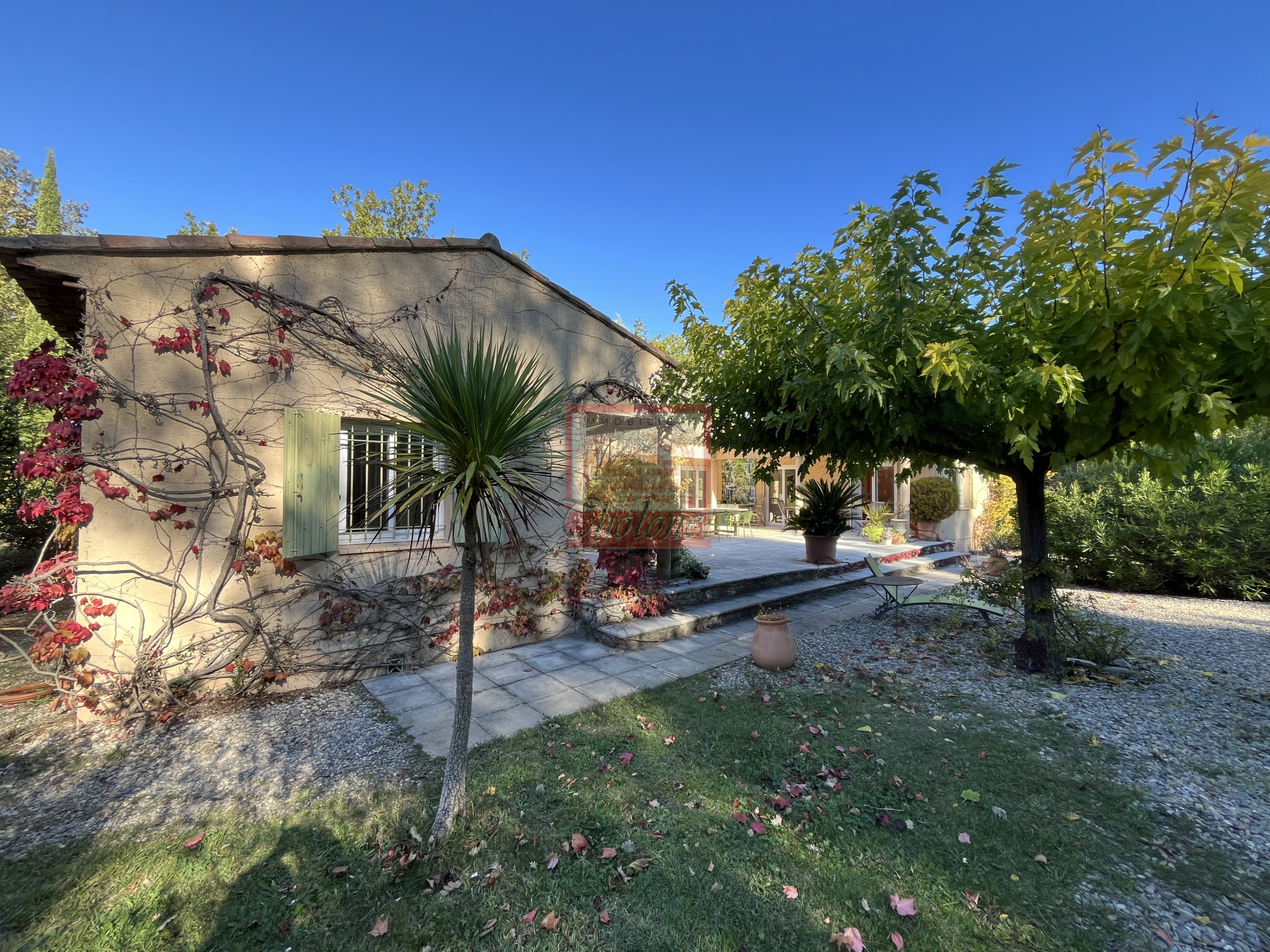 Découvrez à Fuveau un véritable havre de paix, une maison de plain-pied d'environ 200m² sur un magnifique terrain de 13000m² arboré dont 5000m² de forêt privée. Cette propriété est baignée de lumière grâce à son exposition plein sud et ses grandes ouvertures. La maison se compose d'un vaste séjour de 60m² environ agrémenté d'une cheminée et surmonté d'une mezzanine. Côté nuit, vous trouverez une suite parentale avec dressing, ainsi que deux autres suites parentales chacune dotée de sa propre salle de bain. Pour compléter ce bien, une piscine et un grand garage en sous-sol sont à disposition. La localisation est idéales, vous profiterez du calme absolu tout en étant à proximité d'un golf et d'une ecole internationale. A visiter rapidement. Contactez Sophie de Poncins (EI) 06.21.09.45.38 / 04.42.80.43. Les informations sur les risques auxquels ce bien est exposé sont disponibles sur le site Géorisques : www.georisques.gouv.fr
